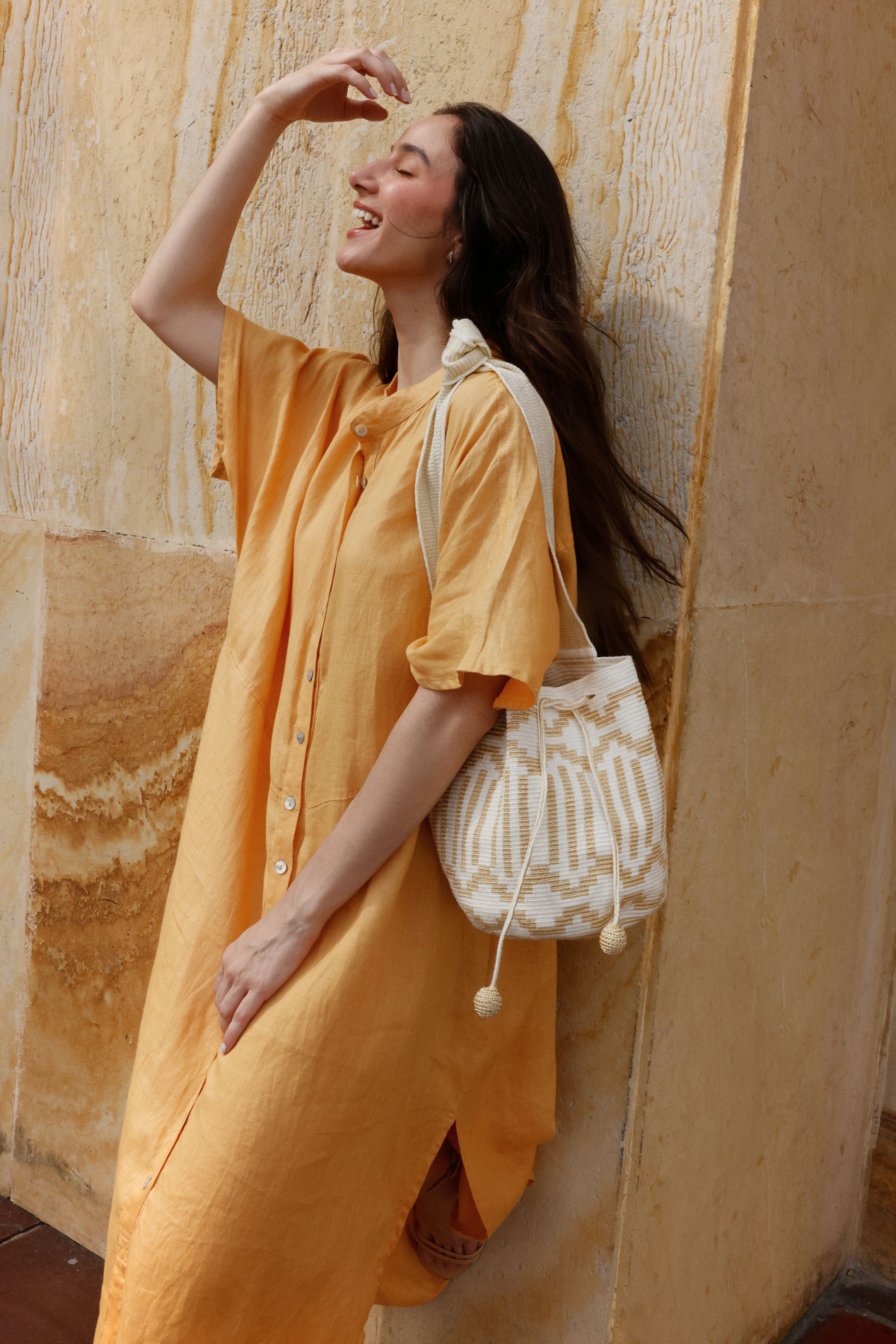 Nuestras mochilas Wayuu, son elaboradas con el tejido más fino y ancestral, utilizando la técnica de medio punto en una hebra. Cada mochila es una pieza única, creada con hilos de fibras naturales que combinan algodón y seda. Debido a la cuidadosa técnica artesanal, la producción de cada mochila toma entre 15 y 20 días, asegurando calidad en cada detalle.