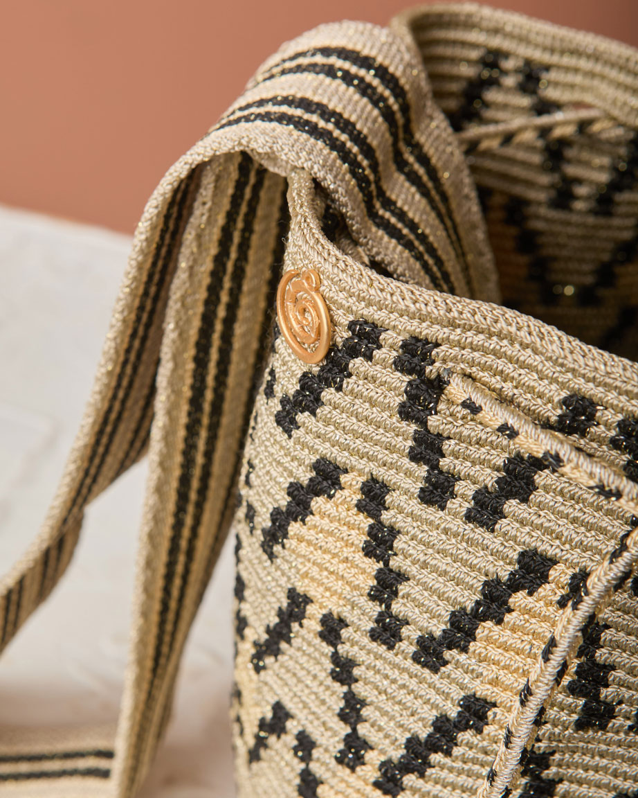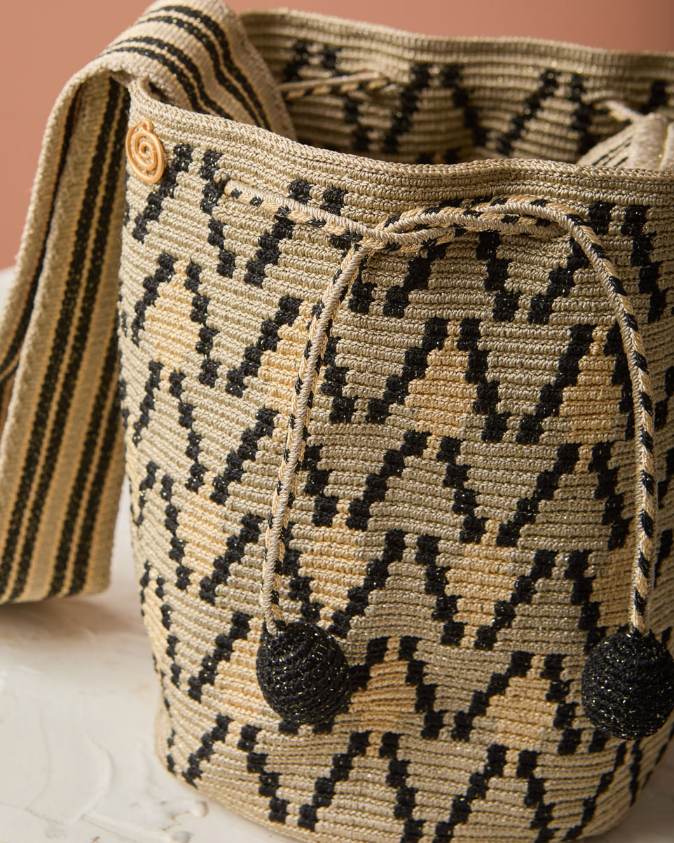 Nuestras mochilas Wayuu, son elaboradas con el tejido más fino y ancestral, utilizando la técnica de medio punto en una hebra. Cada mochila es una pieza única, creada con hilos de fibras naturales que combinan algodón y seda. Debido a la cuidadosa técnica artesanal, la producción de cada mochila toma entre 15 y 20 días, asegurando calidad en cada detalle.